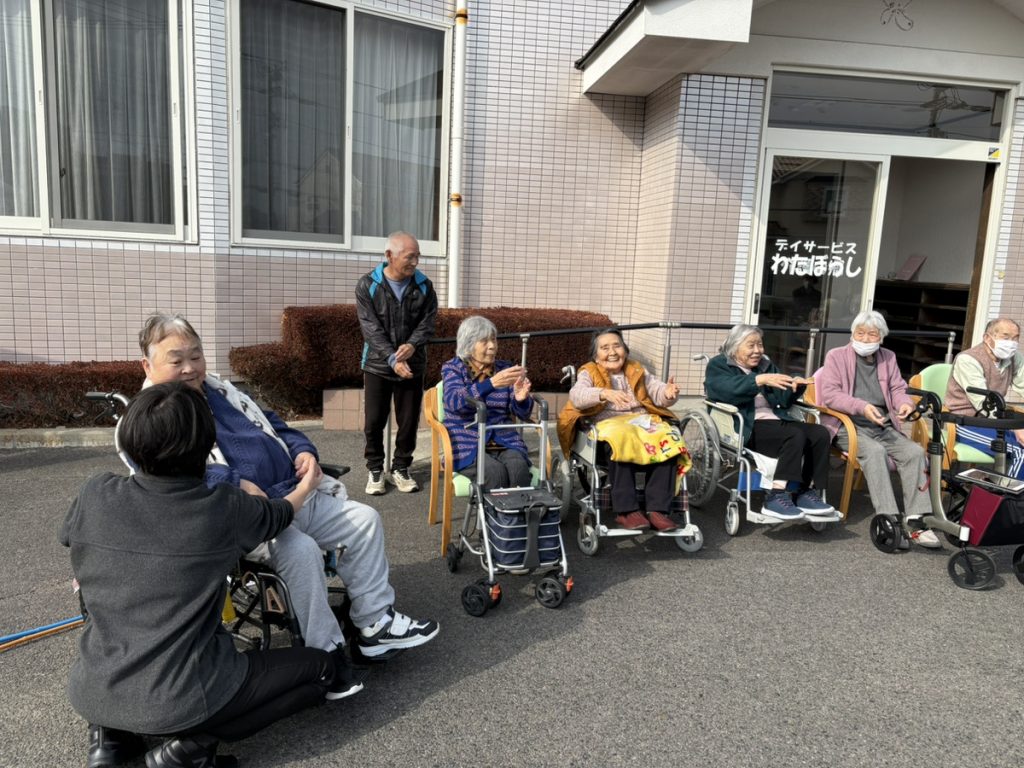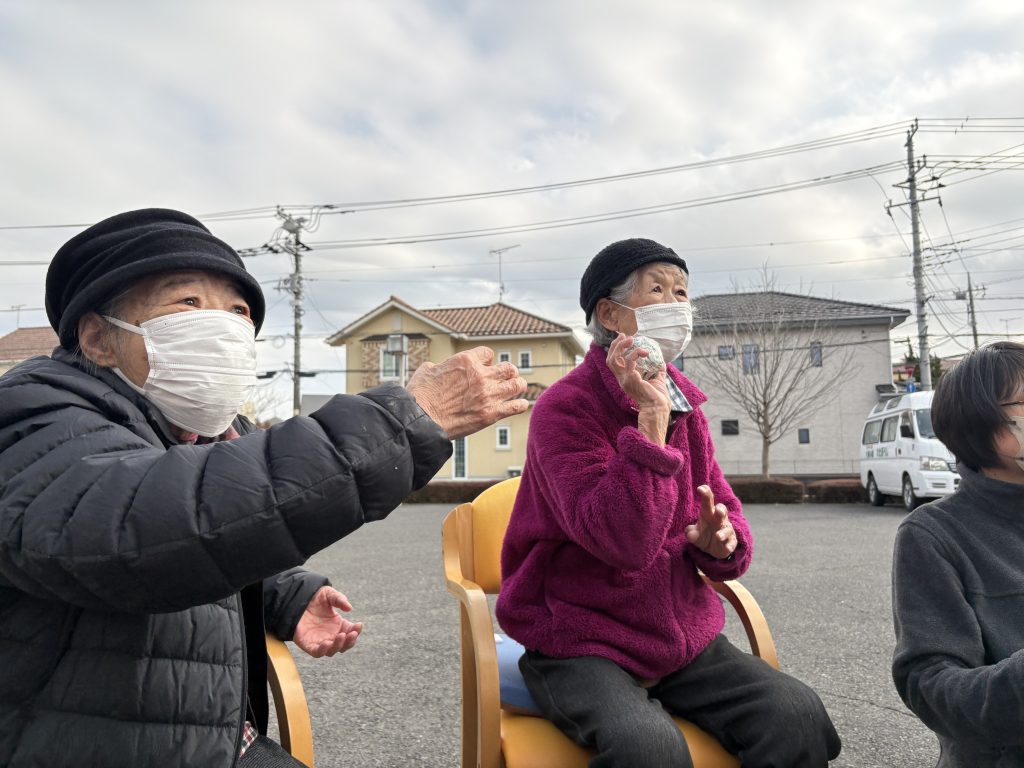 午後のレクリエーションの時間に風もなく暖かかったので、外に出てみました!